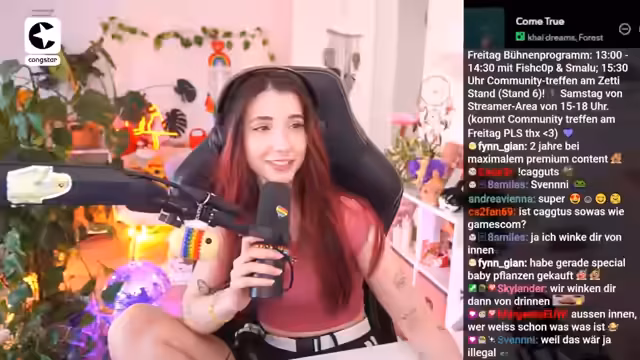 00:21:12Auf Nachfrage der Community wird der Streamplan diskutiert. Es wird entschieden, den Plan nicht auf Instagram als Highlight zu posten, da die Reichweite gering geschätzt wird. Der Streamer kündigt an, diese Woche weniger zu streamen, da sie an der Wochenende auf der Leipziger Kaktus-Messe, einer Gaming-Messe ähnlich der Gamescom, teilnimmt. Für Freitag und Samstag sind bereits feste Termine wie ein Bühnenauftritt und ein Community-Treffen sowie ein Stream-Slot auf der Messe geplant.