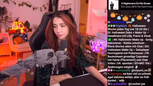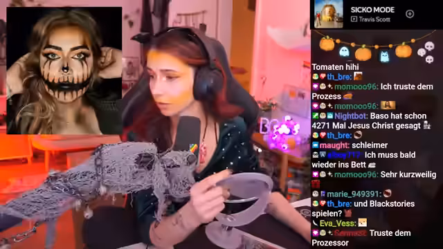 02:30:26Der Streamer plant, ein schnelles Halloween-Make-up zu machen, um Zeit für die Dekoration und das Kürbisschnitzen zu sparen, da der Abend bereits fortgeschritten ist. Er erwähnt, dass er eigentlich auch noch Black Stories spielen wollte, aber die Zeit dafür knapp wird. Während des Schminkens kommt es zu einer kritischen Chatnachricht, in der behauptet wird, andere bekannte weibliche Streamer würden nichts mehr machen. Der Streamer reagiert entschieden auf diese Aussage, stellt klar, dass er solche Vergleiche und das Herabwürdigen anderer nicht duldet. Er betont, dass dies keine Art sei, Komplimente zu machen, und dass alle bekannten weiblichen Streamer, die er kenne, sehr aktiv und kreativ seien. Er lehnt den Wettbewerbsgedanken ab und fordert Respekt. Anschließend beginnt er mit dem Make-up, versucht, ein Kürbis-inspiriertes Aussehen zu kreieren, und stellt fest, dass ihm orangefarbener Lidschatten fehlt. Er improvisiert mit wasseraktivierten Farben und teilt seine Gedanken über die Herausforderungen des Schminkens live im Stream, während er mit der Community interagiert und sogar vorschlägt, dass alle Zuschauer zu Hause mitmachen und ihre Halloween-Make-ups im Discord teilen sollen.