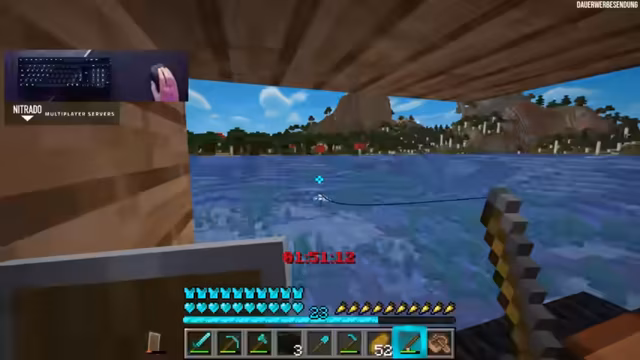 02:56:34Der Streamer stellt fest, dass der aktuelle Run außergewöhnliches Potenzial hat, und beschließt, auf einen verzauberten Bogen zu angeln. Er erklärt, dass ein Bogen mit Infinity eine Fernkampfwaffe wäre, die für den weiteren Verlauf sehr nützlich sein könnte. Während er wartet, dass die Nacht anbricht und Spinnen spawnen, hofft er auf das Drop von Strings für die Angel. Der Chat wird über die Chancen eines verzauberten Bogens informiert und der Streamer betont, dass selbst bei geringen Wahrscheinlichkeiten man an seine Träume glauben muss.