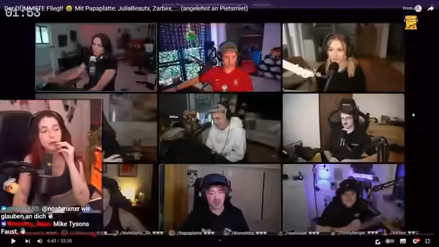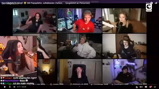 02:17:06Während des Streams interagiert der Streamer intensiv mit dem Chat, der bei der Beantwortung der Fragen hilft. Insbesondere bei schwierigen oder kniffligen Fragen, wie zum Beispiel zur Anzahl der Beine einer Spinne oder zur Hauptstadt von Tansania, bittet sie um Bestätigung der richtigen Antworten. Die Dynamik zwischen Streamer und Chat zeigt sowohl Unterstützung als auch humorvolle Kommentare, besonders wenn der Streamer offensichtlich überfordert ist oder Fragen falsch interpretiert. Die Zuschauer werden regelrecht zu Teilnehmern am Lerprozess.
