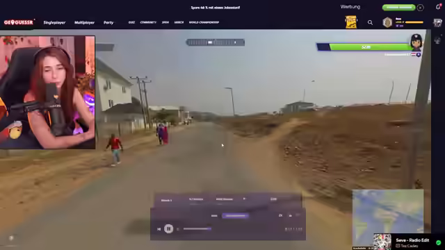 01:45:52Das Replay eines Gegners wird analysiert, wobei auffällt, dass dieser oft lange AFK ist und dann sehr präzise den Standort errät, was den Verdacht auf Cheating aufkommen lässt. Es wird kritisiert, dass der Gegner sich lange ein Schild ansieht und dann genau die Straße findet. Der Verdacht erhärtet sich, dass der Gegner Informationen googelt. Es wird ein Spieler gemeldet, der vermutlich cheatet. Ein anderer Spieler schenkt einen Win, was auf unkonzentriertes Spielen hindeutet. Es wird vermutet, dass dieser Spieler nur auf die First-Guess-Prozent-Chance aus ist. In einer neuen Runde wird Belfast erkannt. In Guatemala wird ein Eiffelturm-ähnliches Objekt entdeckt, was für Verwirrung sorgt. In Afrika wird aufgrund der schlechten Kameraqualität und fehlendem Follow-Car zunächst Nigeria vermutet, aber dann Guatemala entdeckt. Es wird festgestellt, dass man in Afrika schnell falsch liegen kann, da die Entfernungen so groß sind. Eine weitere Runde führt nach Bern in der Schweiz. In einer anderen Runde werden verschiedene Flaggen entdeckt, was zur Verwirrung führt. Es wird überlegt, ob man sich in Serbien, Tschechien oder der Slowakei befindet, bevor Slowenien identifiziert wird. Luxemburg wird anhand gelber Kennzeichen erkannt. In Südamerika wird Chile vermutet. In der Ukraine wird die International Christian Academy entdeckt. In Ruanda wird ein rotes Rücklicht erkannt. In Senegal wird die französische Sprache als Hinweis genutzt. Die Flagge von Senegal wird übersehen. Die Dominikanische Republik wird anhand von "com.com" erkannt. Am Ende steht Platz 13 zu Buche, nachdem man auf Platz 21 gestartet war.