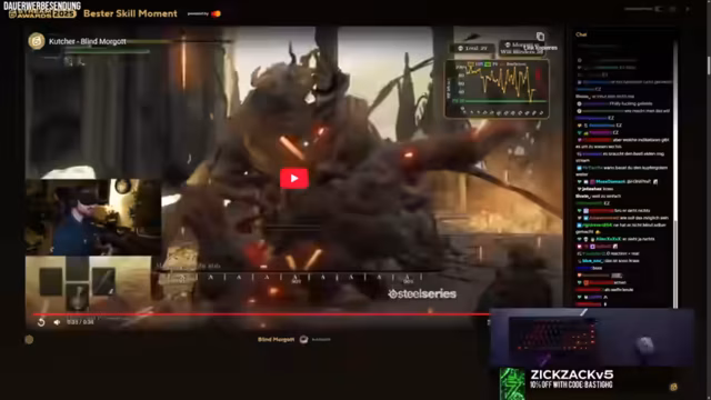 02:39:45Der Streamer beginnt mit der Durchsicht verschiedener Kategorien für die Stream Awards, beginnend mit dem 'besten Gaming-Moment'. Er kritisiert, dass die eingereichten Clips oft nicht von der besten Qualität sind und spekuliert, dass Streamer zu spät mit dem Voten beginnen. Für die Kategorie 'beste Skill-Moment' zeigt er große Bewunderung für einen Clip, in dem ein Spieler einen Elden Ring Boss blind besiegt, und würdigt das große Commitment, das dafür notwendig war.