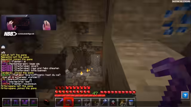 10:45:45Der Streamer wechselt kurz vom Bauen zu Looting-Aktionen auf dem Server. Er leert die Basis von anderen Spielern wie Ramos und Hugo nach Anfragen aus der Community. Dabei wird das Thema Gravel-Farming und die Effizienz davon diskutiert. Zudem gibt es eine Auseinandersetzung über das Nether-Portal von Gambo, welches als illegaler Chunk-Loader beschuldigt wird. Dies führt zu einem umfassenden Check der Portale und Server-Regeln, um einen fairen Spielbetrieb zu gewährleisten.