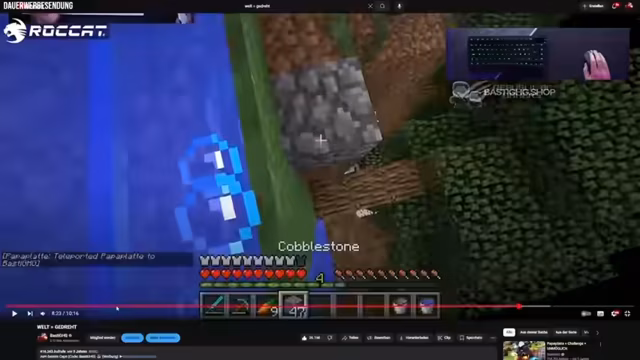 00:48:24Nachdem die Villager in der Basis sind, steht der Aufbau ihres neuen Wohnraumes auf dem Plan. Der Streamer plant, einen künstlichen Dorfteil zu gestalten, indem er Dirt und Grasblöcke als Grundfläche verwendet. Es sollen Häuser, Wege und Dekorationselemente wie Blumen und Laternen integriert werden. Gleichzeitig beginnt der Streamer mit der Farmung von Ressourcen wie Wolle, um den Villagern Betten und andere notwendige Gegenstände zur Verfügung zu stellen.