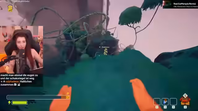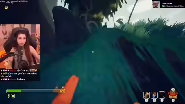 04:52:17Zu Beginn des Stream-Teils beginnt die Klettertour eine lange Bananenranke hinauf. Dabei werden Bananen gesammelt, aber die Position eines Gepäckstücks auf der Ranke ist unerreichbar und der Aufstieg verursacht Schaden. Beim Weitergehen über eine Anhöhe erprobt das Team verschiedene Routen. Die Kletteraktion wird durch einen Ausrutscher und anschließendes Helfen bei der Bergung unterbrochen. Ein gefundener Gegenstand, möglicherweise ein Erste-Hilfe-Set, wird gegen einen regelmäßigen 'Gift'-Schaden eingesetzt, was ein wichtiges Spielelement darstellt.