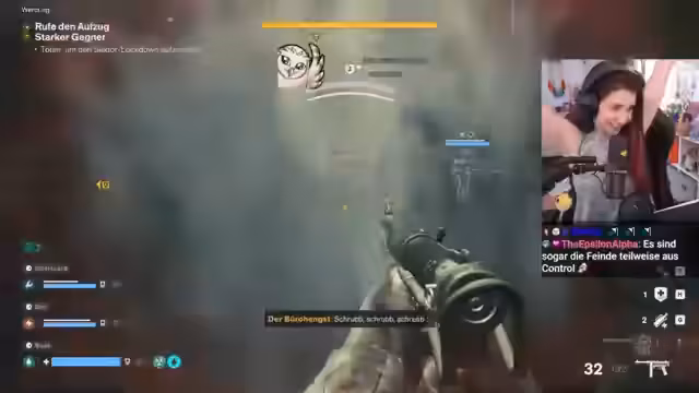 06:17:37Die Stimmung im Stream bleibt trotz der Gefahr locker und humorvoll. Die Spieler entwickeln eine eigene Teamidentität, indem sie sich wiederholt als 'Bergziege' bezeichnen und einen Team-Ausruf, 'Pfadfinder Freunde', etablieren. Es werden absurde Vergleiche und Wortspiele eingebaut, wie die ständigen Witze über 'Mamas' und der Bezug zu 'Sauron'. Diese humorvolle Interaktion dient als entscheidendes Bindemittel, das den Druck der Situation auflockert und den Zusammenhalt stärkt, auch als ein Spieler kurzzeitig alleine weitermuss.