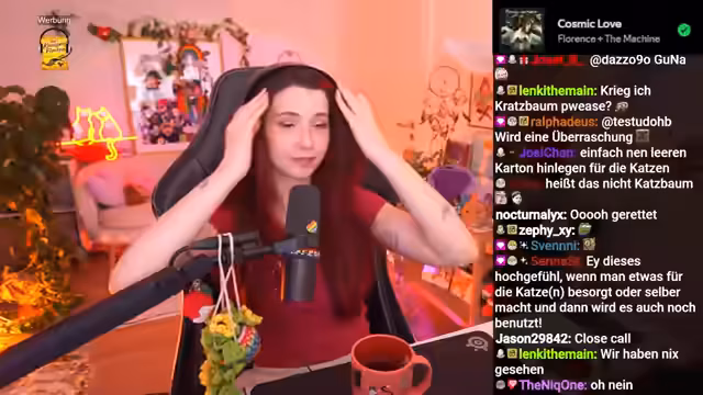04:10:38Der Streamer wechselt das Thema und teilt persönliche Erlebnisse aus seinem Alltag. Er erzählt von der Freude über den Entdeckung eines eulenförmigen Türstoppers und berichtet von seinen Katzen, insbesondere von Luna, die sehr neugierig ist. Außerdem spricht er über seine Narkoseerfahrung bei einer Nasenoperation, die er als nicht schlimm beschreibt, aber von der er sich im Vorfeld Gedanken gemacht hatte. Er berichtet auch über seine Messepläne für das kommende Jahr, zu denen die Kaktus, die Gamescom, die Polaris und die Dokomi gehören.
