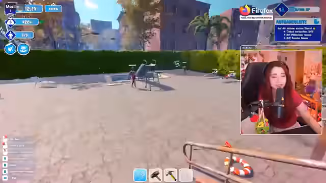 01:42:12Der Stream konzentriert sich nun auf den Aufbau des neu benannten 'Firefox Resort'. Nachdem der übernommene Park zunächst aufgeräumt und repariert werden muss, beginnt der Bau der grundlegenden Einrichtungen. Dies schließt den Bau eines Pools, von Toiletten, Liegen und einer Rutsche ein, um den Park überhaupt erst öffnen und erste Einnahmen generieren zu können. Der Prozess wird als schwieriger Anfang beschrieben, der jedoch die Basis für die geplanten Challenges schafft.