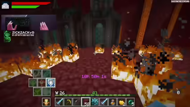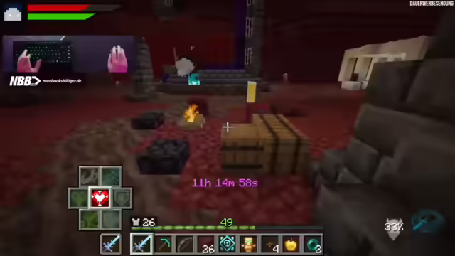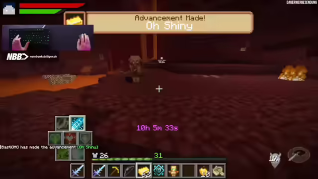 04:23:26Der Streamer findet ein Upgrade-Template und freut sich darüber. Er erhält mehr EP durch einen Ring. Er bedankt sich für einen Raid und begrüßt die Zuschauer. Er plant, seinen Rucksack auf Netherite zu upgraden, um mehr Upgrade-Slots zu erhalten. Er findet Auto Smelting und Tool Swap Upgrades super. Er sammelt Items direkt in den Rucksack ein und findet das Melting Upgrade cool. Er freut sich über eine passive Fähigkeit, die ihm mehr Herzen gibt. Er checkt, ob er auf dem Boden ist. Er versucht, sich ein bisschen zu farmen. Er findet den Backpack eines Piglins und ist begeistert von den stabilen Sachen, die er dabei hat. Er überlegt, sich eine NoFogMod reinzuknallen. Er könnte sich eine Drang Slayer craften. Er überlegt, ob er sich den Hero-Helm holen soll. Er findet, dass es einen Vibe hat, einfach nur durch den Nether zu treffeln, aber er erreicht gerade nichts Neues. Er merkt sich den Wayward Kompass, um einen coolen Dungeon schneller zu finden.