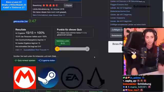 01:30:38Nach dem Timeguesser folgt ein Gaming-Quiz, das für erhebliche Frustration sorgt. Viele Fragen werden als subjektiv, unfair oder einfach nur falsch formuliert empfunden. Teilnehmer:innen kritis insbesondere die Bewertung der meistverkauften Spiele und die Auswahl der Fragen. Die Stimmung ist angespannt, da die Antworten oft nicht eindeutig sind und man sich nur auf eine gewisse Faktenlage verlassen kann. Die Punktzahlen des Quizzes fallen daher durchweg niedrig aus und hinterlassen einen bitteren Beigeschmack.