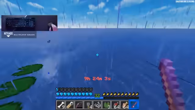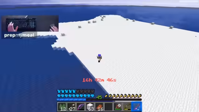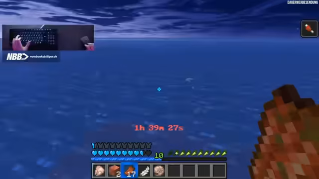 17:29:40Nach rund 17 Stunden Streaming nutzt der Streamer seine Energien, um mit dem gesammelten Wolle eine riesige Plattform oder Insel zu bauen. Das Ziel ist, etwas Kreatives und Großes zu erschaffen, quasi ein Imperium in der Wasserwelt. Dabei diskutiert er über das Design, mögliche Farben und den Aufbau, auch wenn die eingeschränkte Ressourcenpalette nur Wolle erlaubt.