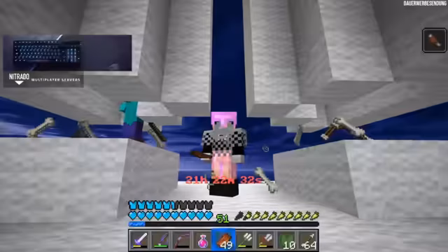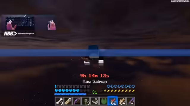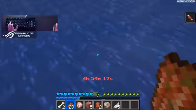 04:46:33Nachdem vier der acht benötigten Kupferblöcke gesammelt wurden, konzentriert sich der Streamer wieder voll auf das Angelsparen. Der Stream interaktiv und der Support der Community wird als extrem motivierend beschrieben. Allerdings führt die geringe Drop-Rate der Angel zu Frustration, und ein Spieler mit Dreizack, der den Streamer attackiert, wird als zusätzliche, nervige Störung wahrgenommen.