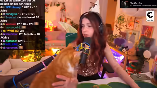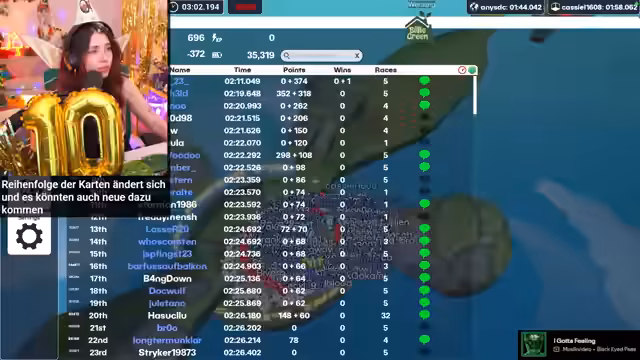 04:09:37Der Streamer erinnert daran, dass er seit dem 21.03.2016 Twitch-Partner ist und dieses Jubiläum mit der Community feiert. Er kündigt an, das zu tun, was sein Chat am liebsten hat: Murmeln. Gleichzeitig werden immer wieder die beiden Katzen Luna und Ferox ins Bild gerückt, die als süß und ablenkend für den Streamer gelten und für Unterhaltung im Chat sorgen. Die Dekoration mit Luftschlangen und die Vorbereitungen für das Spiel laufen weiter.
