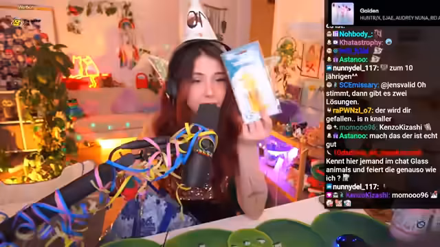 04:40:02Feierlichkeiten zum zehnjährigen Twitch-Partner-Jubiläum stehen im Mittelpunkt. Die Dekoration, insbesondere die Partydreiecke, erzeugt Heiterkeit, da deren Ästhetik diskutiert wird. Streamer vergleicht sich spielerisch mit dem Erzfeind Dalu Card, der bereits länger Partner ist. Die Deko wird aufgebaut und die Kamera-Positionierung bereitet Kopfzerbrechen, sodass der Schreibtisch immer voller und chaotischer wird. Die Stimmung ist gelassen und persönlich.
