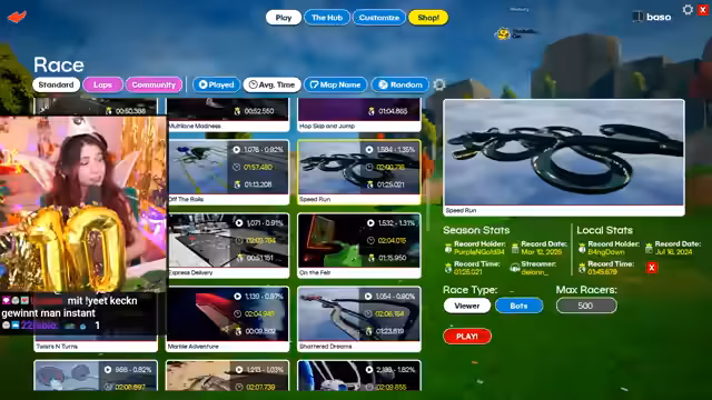 05:20:52Nach einer langen Vorbereitungsphase beginnt das eigentliche Murmel-Event. Als kleine Einleitung erwähnt der Streamer das Chaos der Dekoration und die verspätete Überleitung zum Spiel. Die Murmel-Regeln werden erklärt: die erste Murmel im Ziel erhält einen VIP-Status, während die letzte Murmel im Ziel mit einem permanenten Chat-Bann rechnen muss. Die Mitspieler werden aufgefordert, mit '!play' beizutreten.
