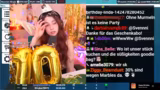 08:06:49Nach fast neun Stunden Stream bittet der Streamer die verbliebenen Zuschauer um eine letzte Murmelrunde. Anschließend kündigt sie das Streamende für diese Nacht an. Sie dankt nochmals allen für die Teilnahme, die Geschenke und die lange gemeinsame Zeit. Für die Zukunft kündigt sie an, am eigentlichen Geburtstag spontan zu streamen und ansonsten nächste Woche wieder da zu sein. Der Stream endet mit einem finalen Song.