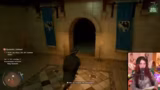 02:03:07Nachdem er neue Kleidung von den Dorfbewohnern erhalten hat, versucht der Streamer, erneut zur Burg zu gehen. Nachts angekommen, wird er dank des passenden Outfits problemlos durchgelassen. Er erkundet die Burg, trifft auf schlafende Wachen und findet sein Pferd, mit dem er interagieren kann.