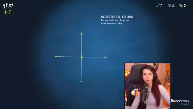 03:15:05Beim Betreten des Observatoriums versucht der Streamer, ein mit einem Fernrohr versehenes Rätsel zu lösen, das Sternummern aufdeckt. Nach anfänglicher Verwirrung, da er die Zahlen fälschlicherweise als Tageszahlen interpretiert, erkennt er, dass es sich um eine Folge von 1 bis 12 handelt. Die fehlende Nummer 6 bei einem Sternwirt irritiert ihn, und er stellt fest, dass eine bestimmte Position des Fernrohrs das Durchgucken unmöglich macht, was auf ein mögliches Designmerkmal im Spiel hinweist.