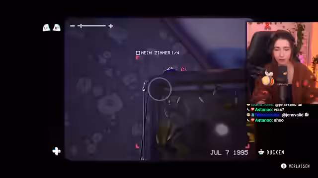 02:58:13Die Erzählung wechselt in eine Rückblende in den Juli 1995. Die Protagonistin ist zu diesem Zeitpunkt 17 Jahre alt und lebt mit ihren Katzen in ihrem Zimmer vor einem bevorstehenden Umzug. Der Gameplay-Mechanismus des Camcorders wird eingeführt: Er wird verwendet, um persönliche Videomomente aufzunehmen. Durch die Aufnahmen können Sammelobjekte freigeschaltet werden, was dem Streamer sehr zusagt, da dies seinem Erkundungsdrang entgegenkommt. Er filmt fleißig sein Zimmer, seine Katze Kürbis und persönliche Gegenstände, die Erinnerungen wecken. Das Spiel vermittelt eine stark nostalgische Atmosphäre und verarbeitet die emotionale Anspannung vor dem Umzug.
