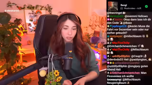 00:04:06Der Stream beginnt mit einer freundlichen Begrüßung der Zuschauer und einem kurzen Rückblick auf den vorherigen Sonntags-Stream, der als „cooler, chilliger, comfy-Stream“ beschrieben wird. Es wird ein Austausch über den Start in die neue Woche geführt, wobei der Dienstag als fester Stream-Tag etabliert ist. Die Streamerin teilt persönliche Eindrücke von der Polaris-Messe, insbesondere den Kauf von gehäkelten Blumen für ihr Mikrofon, die sie als sehr süß und passend zu ihrer Ästhetik (Pflanzen und Kunsthandwerk) empfindet. Sie äußert den Wunsch, selbst häkeln zu können, gesteht aber, die nötige Muße dafür nicht aufbringen zu wollen. Die Interaktion mit der Community ist lebhaft, mit vielen Grüßen und Reaktionen auf Kommentare, wie zum Beispiel die humorvolle Bemerkung über zwei Chat-Nutzer namens 'Captain', wobei einer davon 'knusprig' ist. Es wird auch über persönliche Fähigkeiten gesprochen, wobei die Streamerin scherzhaft ihre Fähigkeit, sich um ihre Katzen zu kümmern, hervorhebt und die Vielfalt der Talente in der Community lobt. Die Atmosphäre ist locker und persönlich, was die Bindung zur Community stärkt.