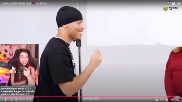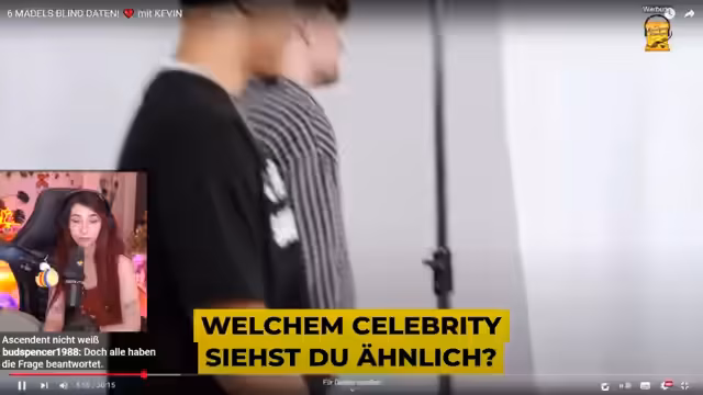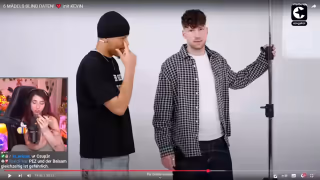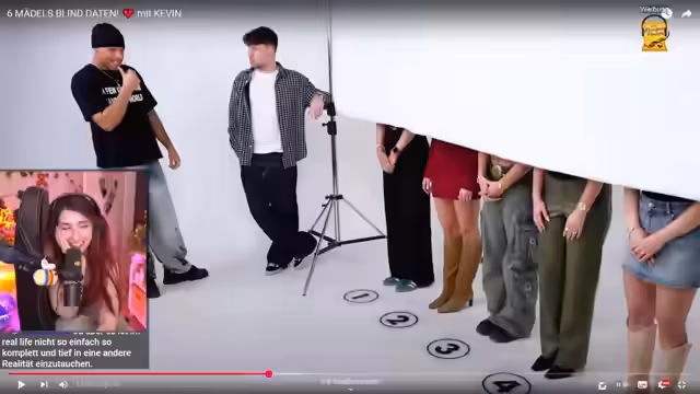 04:06:12Die Kandidatinnen werden nach ihren Talenten gefragt, wobei eine von ihnen erwähnt, dass sie Spagat kann und Cheerleader war. Eine andere Kandidatin gibt an, laut klatschen zu können und demonstriert ihr Talent. Der Streamer und die Kandidatinnen sprechen über das Alter und der Streamer gibt sein Alter von 22 Jahren bekannt, was für Überraschung sorgt. Er steht vor der schwierigen Entscheidung, welche der beiden Kandidatinnen er wählen soll und befragt sie nach ihren Tattoos und deren Bedeutung. Er äußert, dass er Tattoos attraktiv findet, aber bei Frauen eher einen minimalistischen Stil bevorzugt. Der Streamer fragt die Kandidatinnen, wer seiner Meinung nach besser zu ihm passen würde, und die eine Kandidatin antwortet selbstbewusst, dass sie es wäre. Der Streamer reflektiert, dass ihn selbstbewusste Frauen einschüchtern könnten und fragt nach den Wünschen für eine Beziehung.
