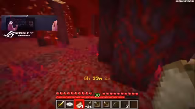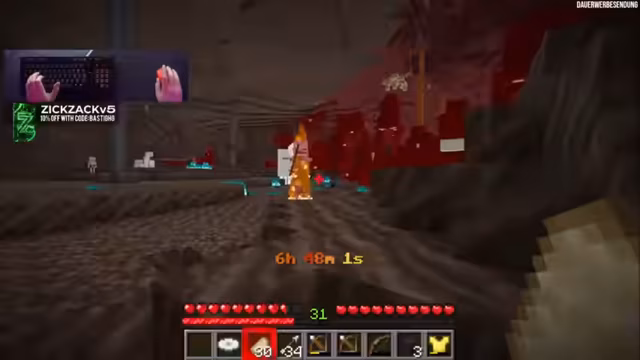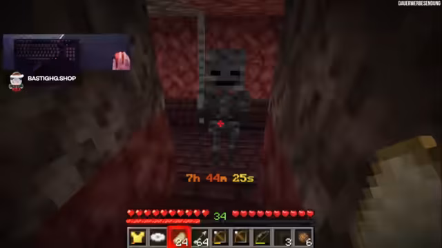 03:17:11Nach siebeneinhalb Stunden sind genügend Pfeile und Wither-Skelett-Köpfe gesammelt, um den Wither zu bekämpfen. Das einzige fehlende Element ist eine Nahkampfwaffe, weshalb der Streamer in die Festung zurückkehren muss, um ein Steinschwert zu beschaffen. Die Beschaffung eines Steinschwerts erweist sich als langwierig, da Mob-Drops unzuverlässig sind. Eine neue Tastatur, die Asus ROG ASOP, wird vorgestellt und beworben. Die Strategie für den Wither-Kampf wird weiter diskutiert, wobei das Trappen in der Decke abgelehnt wird, um einen spannenden Kampf zu ermöglichen. Der Streamer plant, den Wither in einem selbst gegrabenen Gang zu bekämpfen, um seine Flugphase zu kontrollieren.