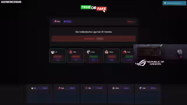 Fußballfakten-Quiz mit True/Fake-Abstimmung