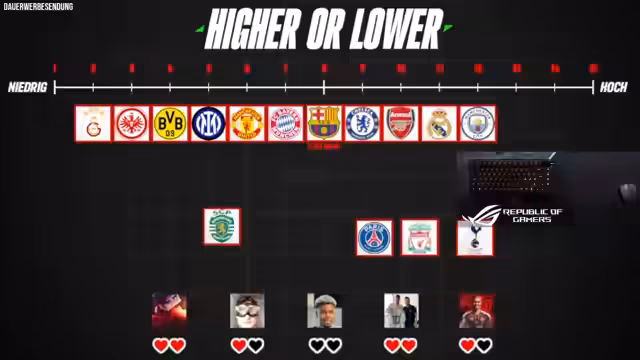 Higher or Lower Quizrunde 4: Marktwert von Fußballspielern