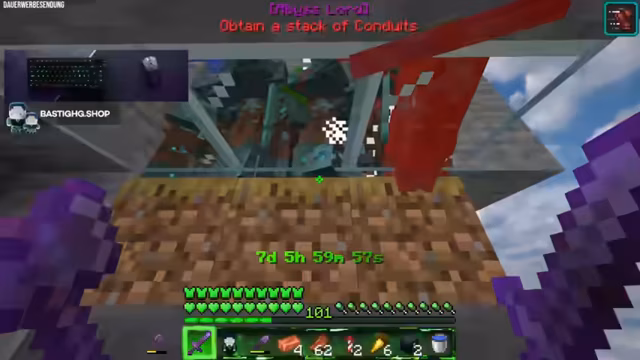 00:24:16Der Fokus des Streams verlagert sich endgültig auf den Bau der Drown Farm. Der Streamer beginnt damit, die letzten Slabs zu platzieren, um den Aufzug für die Farm zu vervollständigen. Er erwähnt, dass für das Achievement '111 Custom Achievements' 512 Nautilus Shells benötigt werden, die mit dieser Farm farmt werden sollen. Gleichzeitig treten technische Probleme auf, da die Performance durch viele Partikelblasen stark einbricht und die FPS deutlich sinken.