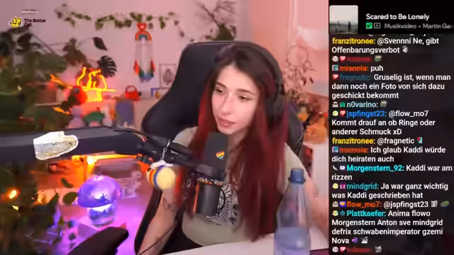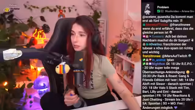 05:10:45Der Stream beginnt mit der ironischen Diskussion über fehlende Sims im Chat. Die Streamerin stellt die Hypothese auf, weibliche Streamerinnen würden automatisch mehr Support erhalten, was sich in ihrer Erfahrung nicht bestätigt. Dies führt zu einer Kontroverse, als ein User den Begriff "ekelhafte Hexe" schreibt, was auf die roten Haaren der Streamerin anspielte. Die anschließende Debatte über Simps als Kompliment versus Beleidigung wird durch zahlreiche Sub-Gifts unterbrochen, die von der Streamerin als Simport bezeichnet werden. Gleichzeitig wird der Umgang mit negativen Kommentaren auf Social Media thematisiert, wobei der Negativitäts-Bias als menschliche Neigung, stärker auf Kritik zu reagieren als auf Lob, festgestellt wird. Die Anonymität im Internet wird als Ursache für die verstärkte Aggression gegenüber Content Creators identifiziert.