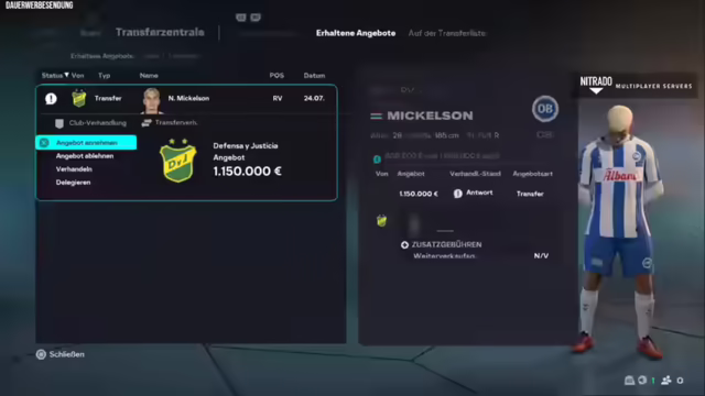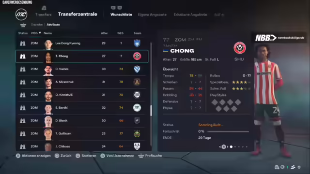04:17:40Es wird Pep Guardiola angerufen, um Sverre Nypan zu verpflichten. Sverre Nypan ist eines der größten Talente im europäischen Fußball. Ein Angebot von 11 Millionen wird abgegeben. Vincent Kompany wird kontaktiert, um den Transfer zu ermöglichen. Sverre Nypan wird verpflichtet. Taiwo Avoni möchte eine Pause. Die Bank sieht schwach aus. Sverre Nypan wäre eine sofortige Verstärkung. Basiltuma erhält ein Startelfdebüt. Es wird überlegt, Basiltuma aufgrund seiner Leistung anstelle von Avonii starten zu lassen. Ben Old zeigt gute Leistungen auf der rechten Seite. Es wird überlegt, ob man europäisch in keinem Wettbewerb ist, da das Spiel verbuggt sein könnte. Fiete wird fast zu Porto transferiert, aber der Transfer wird abgelehnt. Ivan hat eine hohe Bewertung erhalten. Es werden Angebote für Spieler abgelehnt. Es wird ein Tag freigenommen, um sich um persönliche Angelegenheiten zu kümmern. Zvere Nypan wäre ein Knaller. Dumbia ist immer noch ein interessanter Faktor. Es wird versucht, Sverre Nypan zu verpflichten. Es wird ein Fünfjahresvertrag angeboten. Basil Tuma hat im letzten Spiel drei Tore erzielt. Es wird festgestellt, dass seit dem Weggang von Vasily das Spiel besser läuft. Es wird nach exotischen Nationalitäten für die Kaderbreite gesucht. Es werden Spieler aus Guinea und Antigua und Barbuda verpflichtet.