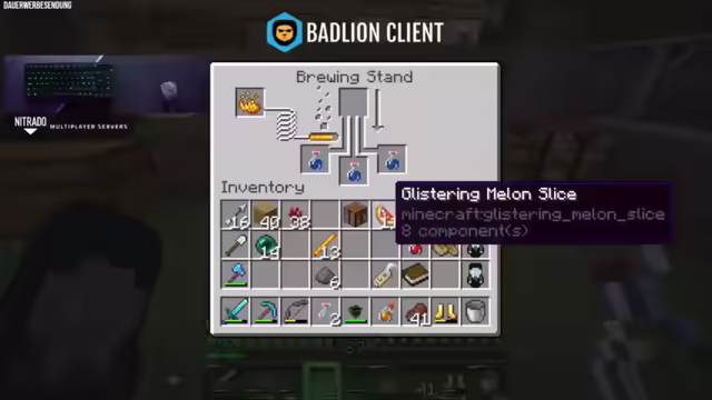 01:51:42Es werden ausreichend Blaze Rods gesammelt, um Brewing Stands zu betreiben. Der Streamer erachtet die Menge als ausreichend und beendet die Expedition, obwohl noch Enderperlen fehlen. Nach dem Verlassen des Nethers wird festgestellt, dass noch ein verbuggter Raid aktiv ist. Da Tränke für Regeneration vorhanden sind, soll sich sofort um die Herstellung gekümmert werden. Es werden Instant Healing Splash Potions gebraut, um sich schnell heilen zu können. Tränke waren anfangs verboten, aber das durchgehende Brennen ist schon eine Weile her. Es werden so viele Tränke gebraut, wie das Inventar tragen kann. Das Ziel ist es, Minecraft Ultra-Hardcore durchzuspielen, was man sich erst verdienen musste.