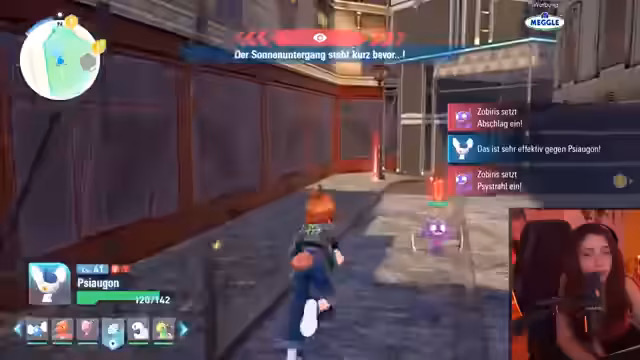 01:11:26Die Streamerin setzt ihre Reise fort und wird zu einem Strategie-Meeting im Hotel Z geschickt. Sie entdeckt ein Röstcafé Feuersturm und macht Fotos mit ihrem Pokémon, wobei sie verschiedene Filter ausprobiert. Die Vorstellung, dass Pokémon real sein könnten und einem in Cafés Gesellschaft leisten würden, wird als schöner Traum beschrieben. Es wird der Gedanke geäußert, dass ein Pokémon-Führerschein erforderlich sein sollte, wenn Pokémon real wären. Später im Spiel kann das Starter-Pokémon Loreblood zu Meganie entwickelt werden, was die Streamerin sehr freut. Sie plant, Meganie einen Mega-Entwicklungsstein zu geben, sobald es die endgültige Form erreicht hat, um dessen Mega-Entwicklung im Kampf nutzen zu können. Die Entwicklung von Loreblood zu Meganie wird mit großer Begeisterung aufgenommen, und die Streamerin bewundert die Größe und das Aussehen ihres neuen Pokémon.