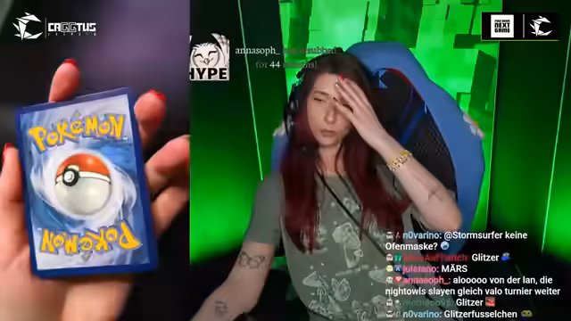 00:35:27Im Verlauf des Streams öffnet der Streamer mehrere Prismatische Entwicklungs-Packs der Pokémon-Karten, die er sich für das Event aufgehoben hatte. Das Eröffnen findet live im Beisein der Anwesenden statt. Ziel ist es, vor allem süße Karten zu ziehen, anstatt auf seltene oder wertvolle Pulls zu fokussieren. Er zieht unter anderem eine süße Evoli-Karte, eine shiny Energiekarte und weitere Pokémon, die er in seinen persönlichen Ordner für „coole Karten“ aufnimmt.