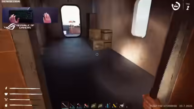 01:45:57Der Tag neigt sich dem Ende zu und die Streamer bereiten sich auf den Schlaf vor. Sie diskutieren ihre Erkenntnisse und den Zusammenhalt, der für das Überleben auf dem Schiff entscheidend ist. Am nächsten Tag wird die Erkundung fortgesetzt, wobei sie in die Kombüse und den Maschinenraum vordringen. Sie stellen fest, dass die Gefahren mit der Zeit zunehmen und das Überleben erschwert wird. Parallel wird die Basis weiter ausgebaut und mit neuen Rezepten, wie für einen Wassersammler, erweitert.