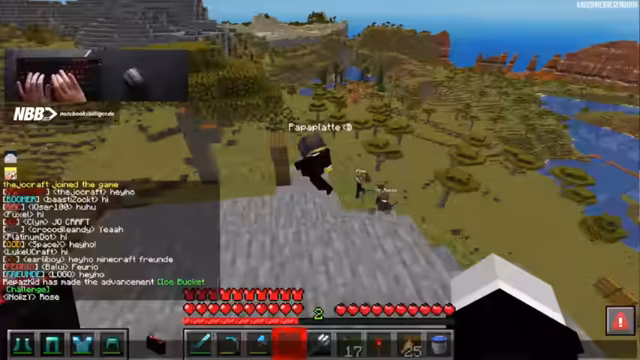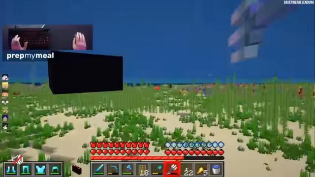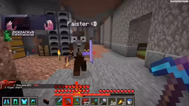 04:18:21Der Streamer beklagt sich über die Villager, die ständig nach Mending- und Unbreaking-Büchern fragen, was er als lästig empfindet. Er vergleicht die Zerstörung von Korallenriffen im Spiel mit der Zerstörung von Ökosystemen im echten Leben und bezeichnet es als den 'beschissensten Grund', dies für Tapeten zu tun. Später wird Feister in die Geheimbasis von Ori eingeladen, die der Streamer schnell aufgebaut hat. Feister ist beeindruckt, aber auch besorgt über mögliche Konflikte. In der Basis wird über den Tausch von Cleanstone gegen Mending-Bücher verhandelt, wobei der Streamer Feister ein Buch gibt, das er angeblich selbst mitgebracht hat, obwohl er später zugibt, dass es von Feister gestohlen wurde. Die Interaktion endet damit, dass Feister einen Ausweg sucht und Kelp farmt.
