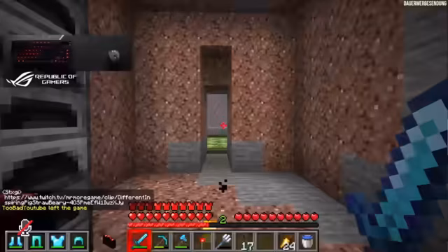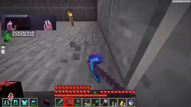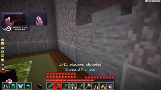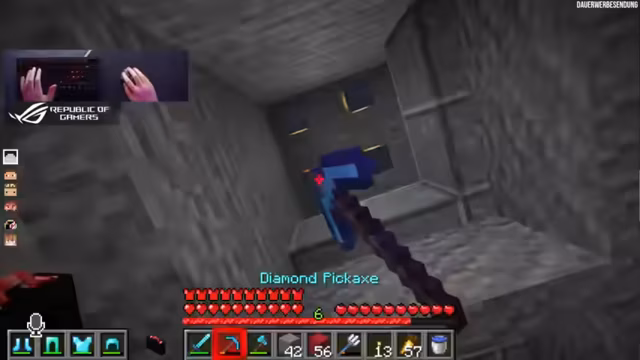 11:35:17Während der Streamer in seiner Mine arbeitet, wird Heiko um Eisen und Kohle gebeten. Später kommt Vini hinzu und berichtet von einem Diebstahl von 18 Diamanten aus seiner Kiste auf Heikos Grundstück. Anhand von Bodycam-Aufzeichnungen wird der Diebstahlzeitpunkt dokumentiert. Vini verdächtigt Heiko, da dieser zur gleichen Zeit seine Ausrüstung aufgewertet hat und möglicherweise einen Mangel an Diamanten hatte. Heiko bestreitet die Tat und behauptet, von einem Mann mit "Entenhänden" bedroht worden zu sein, der Schutzgeld forderte. Er gibt an, nur noch neun Diamanten zu besitzen. Die Situation wird "friedlich" gelöst, indem Heiko verspricht, zukünftig bei Problemen direkt den Streamer zu informieren und dem "Mann mit den Entenhänden" kein Schutzgeld mehr zu zahlen.