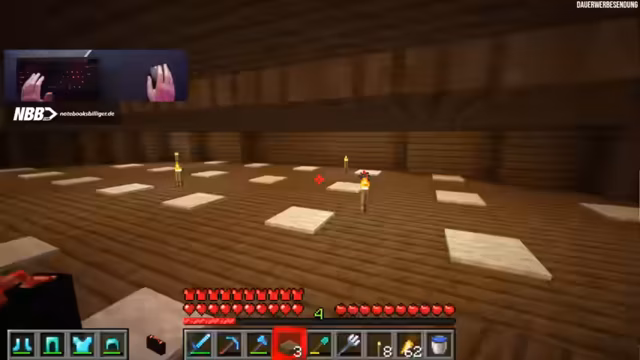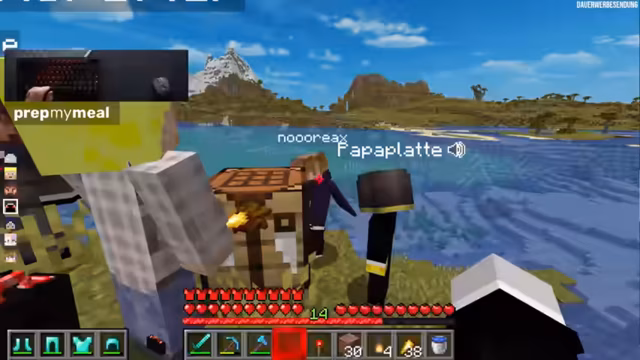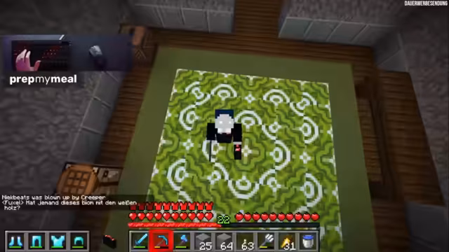 03:39:50Heiko plant, eine Creeper-Farm im Meer zu bauen, um XP zu generieren. Diese Farm soll aus Holz bestehen und nur temporär sein, um später leicht abgebaut werden zu können. Es wird diskutiert, welche Materialien dafür benötigt werden, insbesondere Wolle für Teppiche und einen Schneemann. Reole wird gebeten, Wolle zu besorgen, wobei drei Stacks als ausreichend erachtet werden. Es wird auch erwähnt, dass Hugo, ein anderer Spieler, für einen Tag gebannt ist, weil er interne Discord-Nachrichten und Voting-Statistiken gezeigt hat, was jedoch keinen großen Einfluss auf das Spielgeschehen haben soll, da er am nächsten Tag zurückkehrt. Die Spieler sind sich bewusst, dass dies erst der erste Tag des Events ist und noch viele weitere Tage mit intensiven Aktivitäten bevorstehen. Die Diskussion über die Creeper-Farm geht weiter, wobei die Möglichkeit einer Rocketfarm in Betracht gezogen wird. Es wird auch über die Verwendung von Dripstones in der Basis gesprochen, um Fallschäden zu verursachen. Die Beleuchtung der Basis wird ebenfalls thematisiert, wobei nach schlaueren Konstruktionen als Teppichen und Laternen gesucht wird.