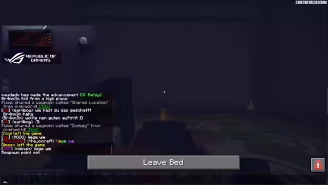 09:15:21Die Gruppe von Streamern und Freunden versammelt sich in Minecraft, um gemeinsam das Kings League Spiel zu schauen. Sie haben einen Greenscreen eingerichtet, auf dem das Spiel projiziert wird, und versuchen, die optimale Bild- und Toneinstellung zu finden. Es gibt Diskussionen über das Seitenverhältnis des Bildschirms (16:9 vs. 4:3) und die Positionierung der Spieler im Spiel, damit ihre Avatare nicht die Sicht auf den Greenscreen verdecken. Die Atmosphäre ist ausgelassen und erinnert an eine Übernachtungsparty oder ein Public Viewing. Es wird darauf geachtet, dass der SRT-Link zum Spiel nicht geleakt wird, um die Exklusivität des gemeinsamen Erlebnisses zu wahren. Die technischen Schwierigkeiten, wie doppelter Ton oder falsche Bildausschnitte, werden humorvoll gemeistert, während die Vorfreude auf das Spiel steigt.