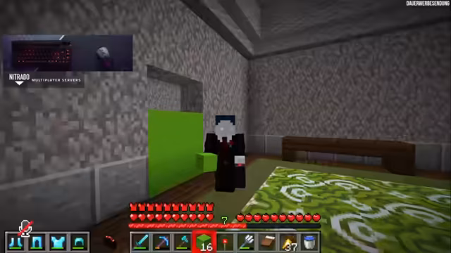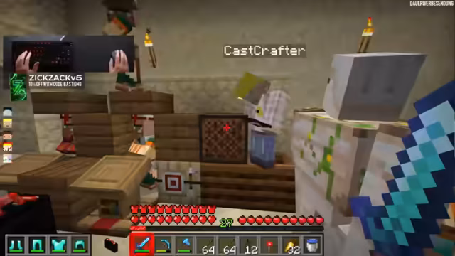 05:37:41Noriax und Veto haben eine einzigartige Arbeitsaufteilung für Craft Attack: Noriax streamt tagsüber, während Veto nachts übernimmt, um sicherzustellen, dass das Projekt 24/7 läuft. Veto wohnt während dieser Zeit auf dem Dachboden von Noriax' Vater. Die Situation wird durch die Tatsache erschwert, dass Veto das Zimmer des Vaters passieren müsste, um den Dachboden zu verlassen, und der Vater von 7 bis 14 Uhr Videocalls hat. Dies führt zu Einschränkungen für Veto, der in dieser Zeit nicht auf Toilette gehen kann. Noriax hat sogar Medikamente für Veto besorgt, um sicherzustellen, dass er gesund bleibt und das Projekt nicht gefährdet wird.