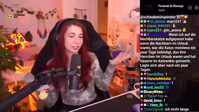 00:16:54Es wird festgestellt, dass es ein Feiertagswochenende ist, was bedeutet, dass der Stream möglicherweise länger dauern kann, da die Zuschauer nicht früh ins Bett müssen. Es wird kurz über die Deutsche Bahn gesprochen und die positive Erfahrung damit geteilt, nachdem zuvor Bedenken geäußert wurden. Es wird eine Anekdote über eine unerwartete spanische Musikeinlage durch Alexa erzählt, was für Verwirrung sorgt. Es wird spekuliert, ob die Katzen möglicherweise die Alexa gesteuert haben könnten, was jedoch unwahrscheinlich erscheint. Es wird sich gefragt, ob Katzen einen vermissen, wenn man nicht da ist.