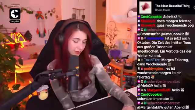 00:26:59Es wird über den Kongstar-Stream gesprochen, bei dem der Chat nicht sichtbar war, was ungewohnt war, da die Interaktion mit dem Chat sonst ein wichtiger Bestandteil des Streams ist. Es wird die Frage gestellt, wer den Stream gesehen hat und die '1-2-Seuche' im Chat angesprochen, bei der anstelle von 'Ja' oder 'Nein' nur Zahlen geschrieben werden. Es wird betont, dass man lieber Worte und Sätze im Chat sehen würde. Es wird die Freude darüber ausgedrückt, dass viele Zuschauer den Kongstar-Stream verfolgt haben, auch wenn die Person im ersten Spiel mental überfordert war. Es wird die Mühe und die coolen Sets der Kongstar-Shows gelobt und betont, wie besonders es ist, an solchen Events teilnehmen zu dürfen.