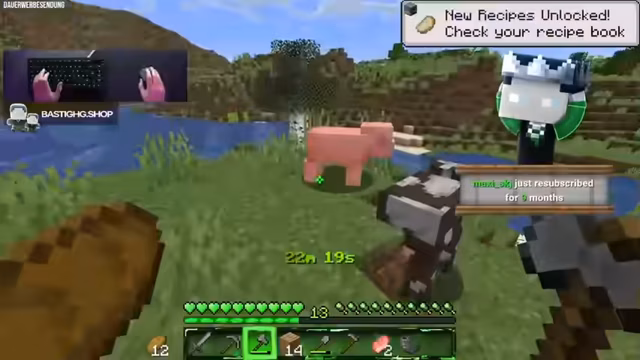 01:57:21Die neu aufgeteilten Teams stoßen auf erste Herausforderungen. Ein Spieler gerät in einem Haus von einem Trident-Gehilsen unter Druck und muss fluchtartig durch das Bauen eines notdürftigen Turms entkommen. Gleichzeitig gibt es große Probleme mit dem Farmen von Fletching-Tables, da Villager ihre Jobs ständig wechseln, was die Planung erschwert. Die anfängliche Begeisterung für die neue Teamstruktur weicht erstmaliger Frustration über die unvorhergesehene Komplexität und die Gefahren im Spiel.