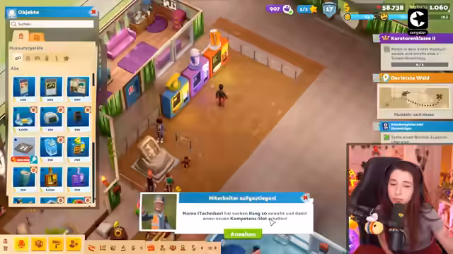 03:32:02Die Aktivitäten drehen sich hauptsächlich um den Aufbau und die Gestaltung eines Museums. Der Streamer eifrig mit der Platzierung verschiedener Objekte wie Kaffee-Kioske, Exponate und Dekorationen, wobei er sich oft über die unlogische Raumaufteilung und die ständigen Bedürfnisse der Mitarbeiter, insbesondere der Notdurft, ärgert. Es werden neue Mitarbeiter für verschiedene Positionen wie Kaffee-Service und Hausmeister eingestellt und beworben.
