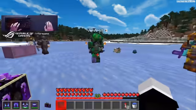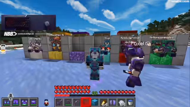 01:35:08Die Spieler bereiten sich auf das bevorstehende 'Force Item Battle' vor, das um 20 Uhr beginnen soll. Es wird erwähnt, dass Minecraft alle Spieler zusammengebracht hat. Die Suche nach einer 'Shine Farm' wird besprochen. Dima und andere Spieler werden begrüßt, und es wird bestätigt, dass die Teams für das Event bekannt sind. Es gibt eine Diskussion über das Trainieren vor dem Battle, wobei dies nicht erlaubt ist. Es wird überlegt, wie die benötigten Gegenstände, insbesondere Netherite-Sets, für zusätzliche Teams beschafft werden können, da die Zeit knapp wird. Marcel wird beauftragt, in der Mine zu farmen, und es wird über die Möglichkeit von 3er-Teams oder das Disenchanten von Rüstungen gesprochen.