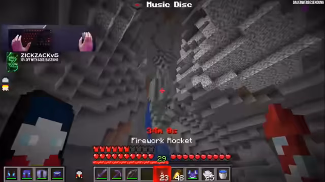 04:24:01Die Spieler befinden sich in einer intensiven Phase des Spiels, in der sie Diamanten mit einer Eisenspitzenhacke suchen und sich auf die Nacht vorbereiten. Ein Lush Cave und eine Festung wurden bereits entdeckt, was als gute Fortschritte gewertet wird. Die Suche nach einer spezifischen Musikplatte, die durch das Töten von Creepern durch Skelette erlangt wird, erweist sich als besonders herausfordernd. Trotz mehrerer Versuche und verschiedener Setups, bei denen versucht wird, Skelette dazu zu bringen, Creeper zu treffen, werden immer wieder die falschen Schallplatten gefunden. Die Zeit drängt, und die Spieler müssen entscheiden, ob sie die Aufgabe skippen oder weiter versuchen. Die Mobs scheinen zudem etwas zu laggen, was die Jagd zusätzlich erschwert. Die Ungewissheit über den Erfolg der anderen Teams trägt zur Spannung bei, während die eigene Effizienz und Strategie auf die Probe gestellt werden.
