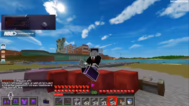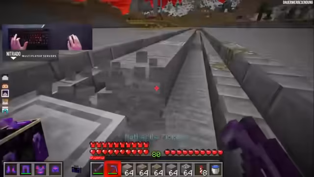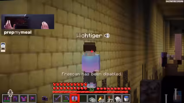 07:36:30Wichtiger fordert den Streamer zu einem Duell heraus, und der Streamer schlägt vor, sein Jump'n'Run zu absolvieren. Die Regeln sind streng: ein Versuch, ohne Elytra und über dem Void. Wichtiger ist sichtlich nervös, da ein Scheitern den Verlust aller Items bedeuten würde, obwohl der Streamer ihn beruhigt, dass er gerettet werden kann. Das Jump'n'Run führt durch eine aufwendig gestaltete Kanalisation und mündet in einen Parcours über dem Void, der als extrem schwierig beschrieben wird. Wichtiger kämpft sich durch die anspruchsvollen Sprünge, wobei die Spannung steigt, da noch niemand diesen Parcours im ersten Versuch ohne Hilfsmittel geschafft hat. Trotz der Schwierigkeit und der wachsenden Nervosität setzt Wichtiger alles daran, als Erster diese Herausforderung zu meistern, scheitert jedoch am letzten Sprung.