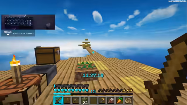 00:14:52Nachdem ein Bambus-Setup abgebaut wurde, konnte der Streamer einen Azalea-Baum pflanzen. Dieser Baum wächst zwar nur mit Knochenmehl, beschleunigt aber die Holzproduktion immens. Um diese Ressource zu schützen, wird eine Auffläche für Setzlinge geplant. Gleichzeitig wird auf dringende Probleme hingewiesen: Der Hunger ist ein großes Problem und nur ein einziger Erdblock ist für den Anbau von Nahrungsmitteln wie Karotten verfügbar. Daher sind weitere Schiffe (Shipwrecks) als Ziel ausgegeben, um mehr Anbaumöglichkeiten zu finden.