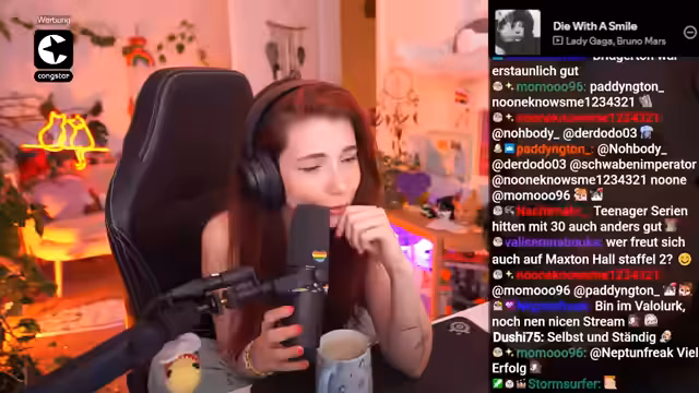 01:40:24Der Streamer spricht über seine Vorliebe für Soundtracks, insbesondere von Filmen wie Ghibli, und von Konzerten, die er besucht hat. Er erwähnt eine Interprettin namens Felice Taster, für die er ein Ticket kaufen möchte, aber mangels Begleitung zögert. Im Chat wird empfohlen, das Ticket allein zu kaufen, was zu einer positiven Entscheidung führt. Er reflektiert über die Faszination für Musik, die er in seiner Playlist hat, deren Namen aber nicht immer kennt, und über die Live-Erlebnisse von Konzerten.