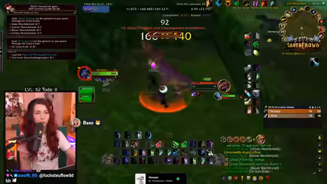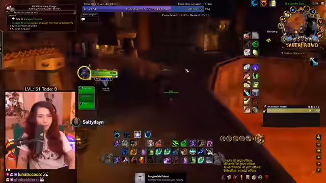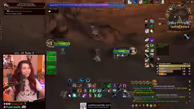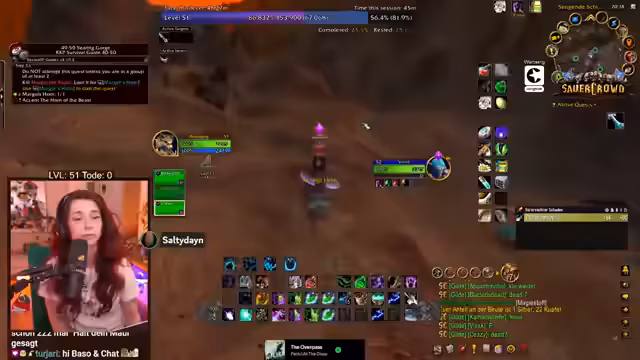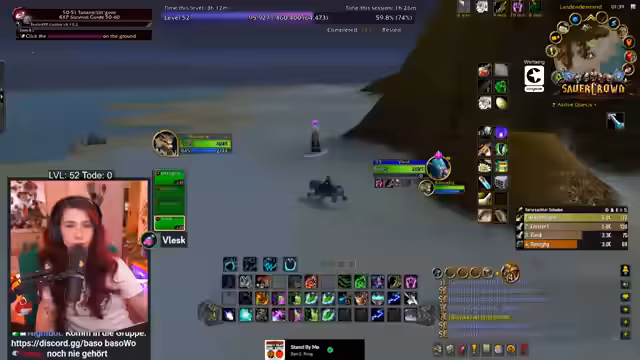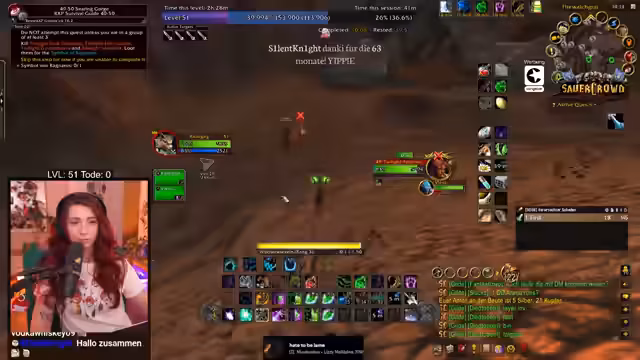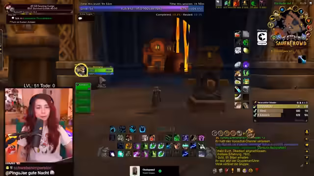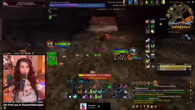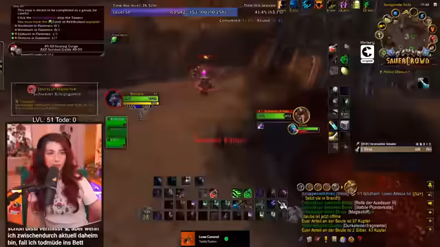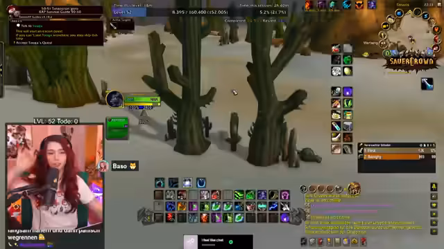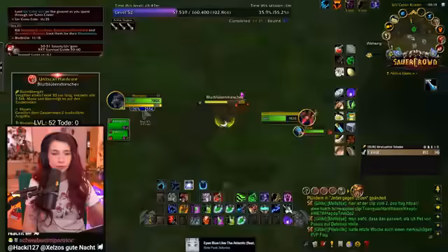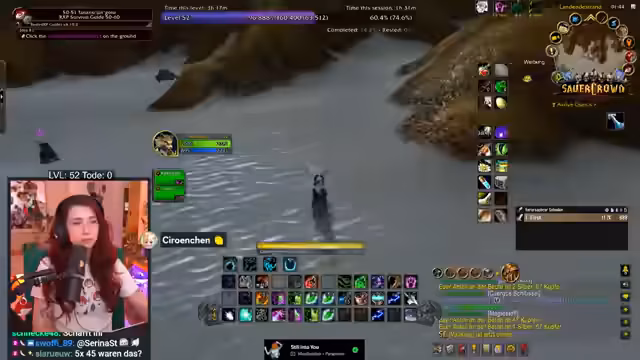 04:25:08Nachdem der Streamer kurz eine Quest erneut abgibt, bemerkt er, dass er ohne zu sterben Level 52 erreicht hat. Der Fokus liegt auf dem Sammeln von Erfahrungspunkten, die durch spezielle Aktivitäten wie High-XP-Sachen deutlich gesteigert werden wurden. Trotzdem ist der Weg bis zum maximalen Level 60 noch lang, was für das Sammeln von GZ-Gold (Goldstücke) relevant ist. Es wird entschieden, mit einer neuen Quest, der Noggenfogger-Prequest, weiterzumachen, bei der möglicherweise eine Kröte eskortiert werden muss.